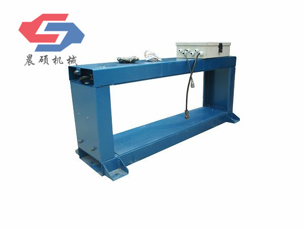 電磁除鐵器的基礎(chǔ)上增加了驅(qū)動(dòng)電機(jī)、滾筒、帶刮板的缷鐵膠帶等組成的缷鐵機(jī)構(gòu)。在工作過(guò)程